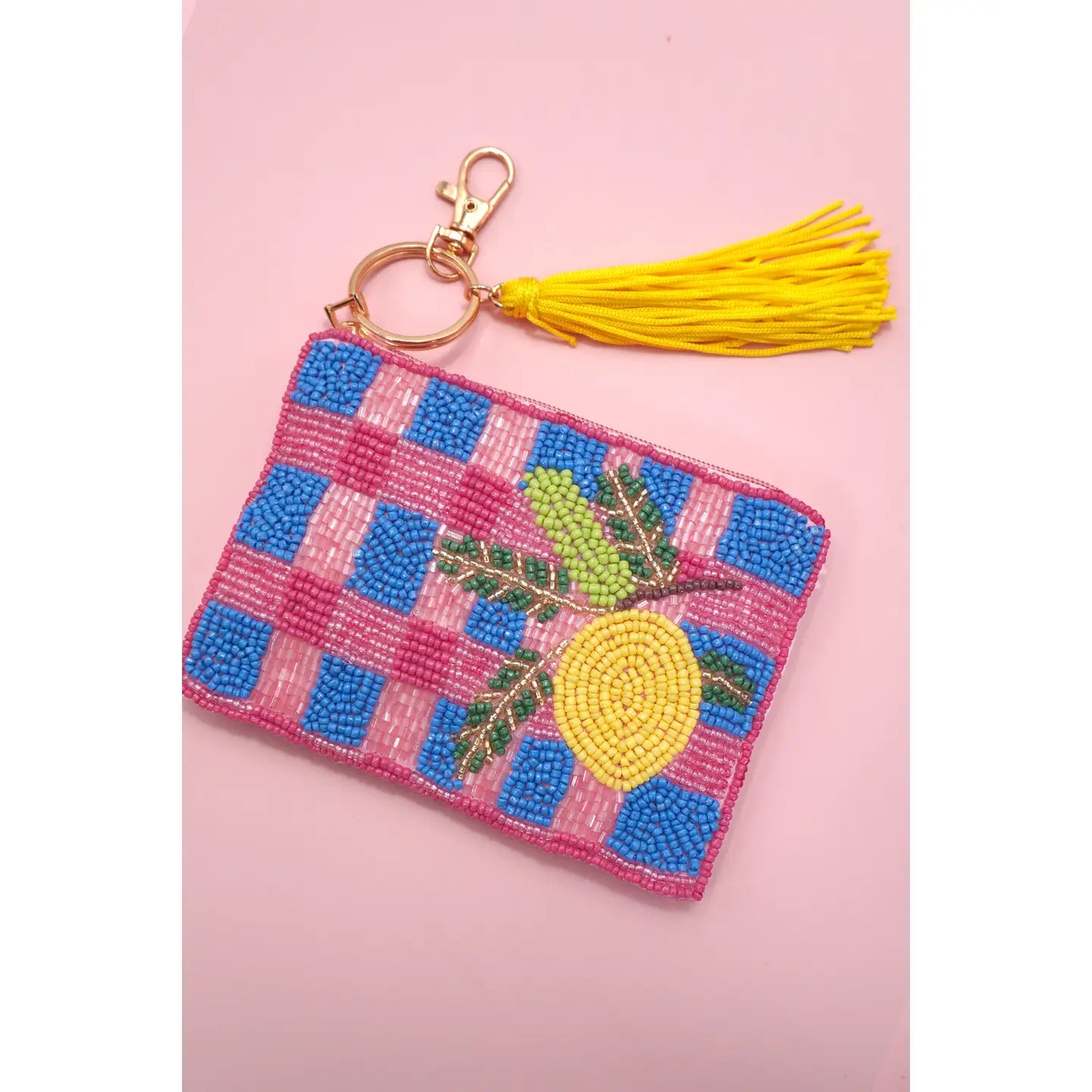 Introducing the Mindy Fruit Seed Bead Coin Purse! This adorable coin purse features beautiful fruit and seed bead detailing, adding a touch of whimsy to your everyday essentials. With a convenient zip closure and charming tassel, keep your coins and small items secure and organized in style.