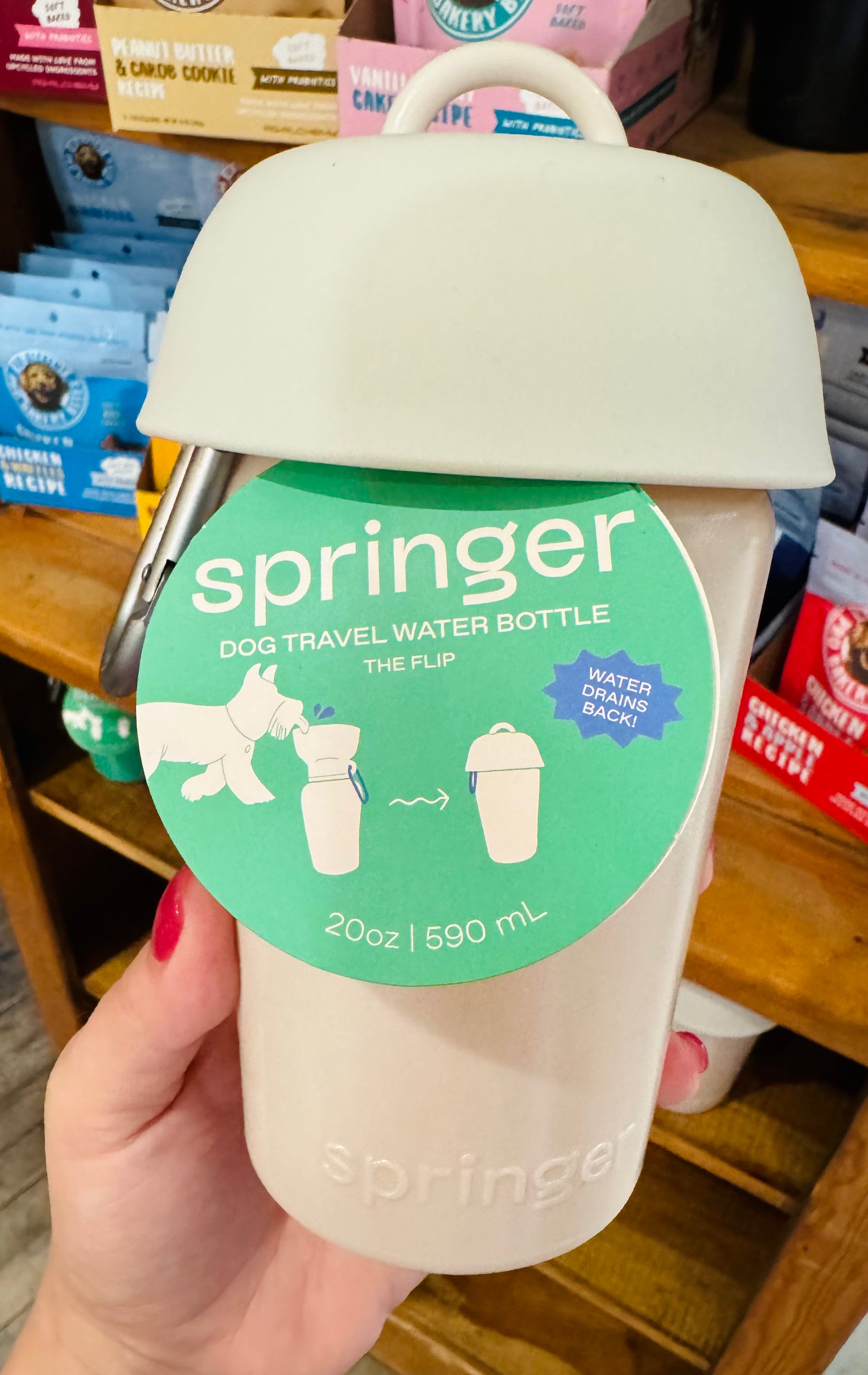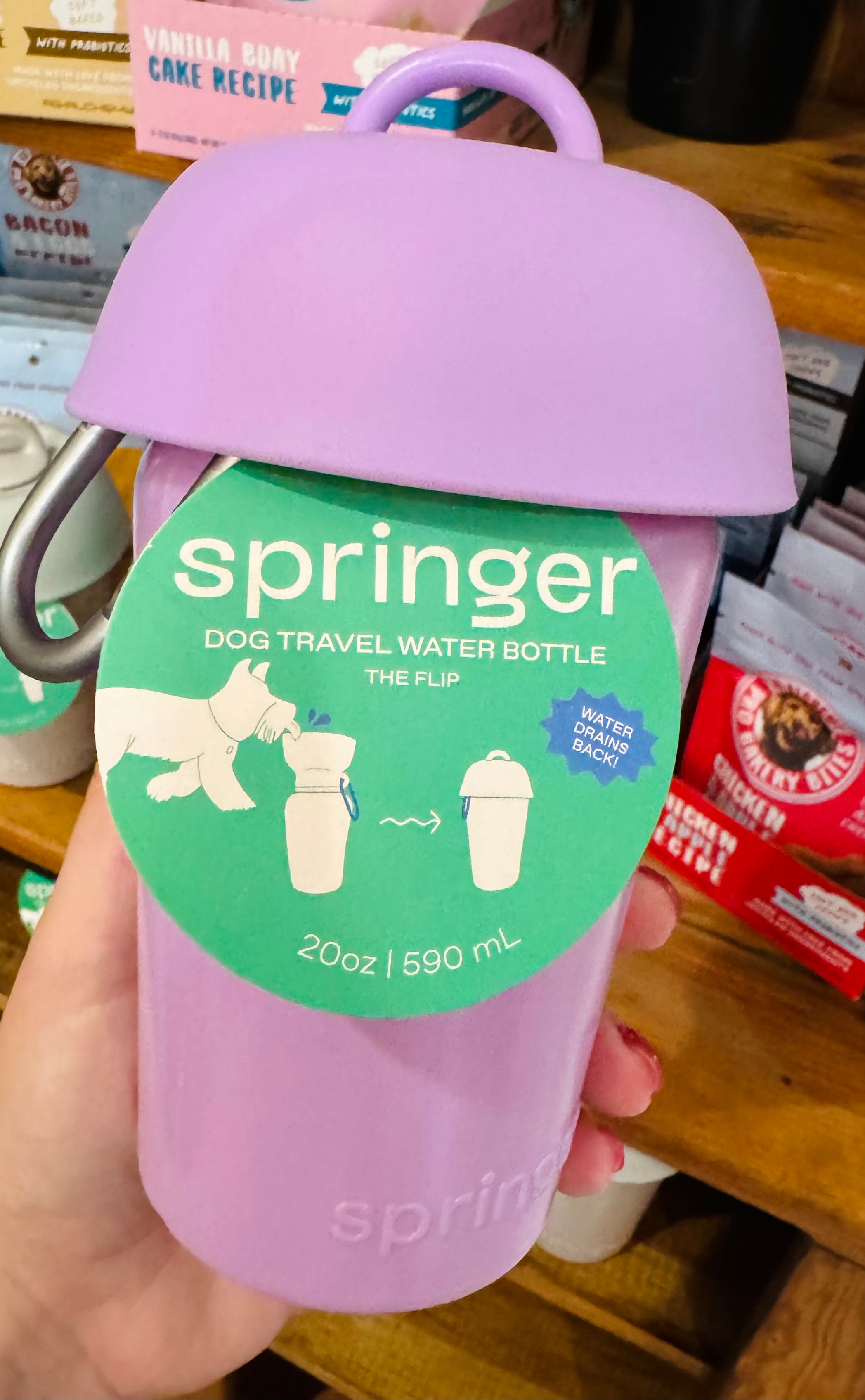 An innovative and convenient dog water bottle designed with your dogs hydration needs in mind, ensuring they stay refreshed and hydrated on-the-go. With a leak-proof design and built-in foldable silicone drinking bowl, you can easily give your dog fresh water whenever they need it, no matter where you are. It's compact, foldable, and lightweight design makes it easy to pack and carry. It fits in most cup holders and easily attaches to your backpack or leash with the included carabiner. Whether you're out hiking a trail, visiting the beach, going on a road trip, or just taking a stroll around the neighborhood.