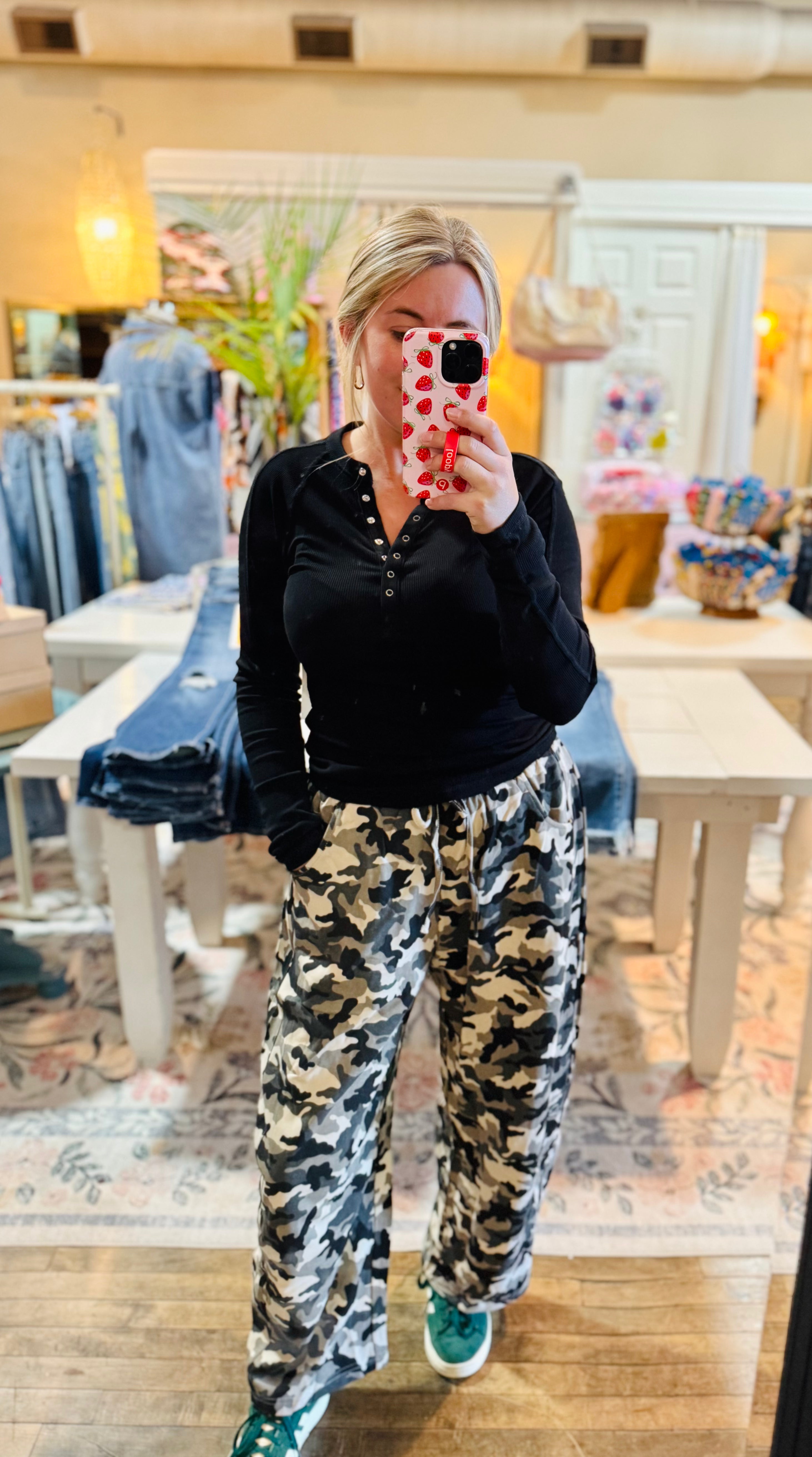 Step into cozy cool with our Camo Terry Cropped Barrel Pants! These laid-back camouflage sweatpants rock a relaxed fit and stretchy elastic waist—perfect for lounging, gameday, or casual streetwear adventures. The trendy barrel leg cut makes them a fun match with a tucked tee, oversized sweatshirt, or a fitted henley long sleeve top. Ready to bring comfy vibes and fall-ready style wherever you go? These pants have got you covered!