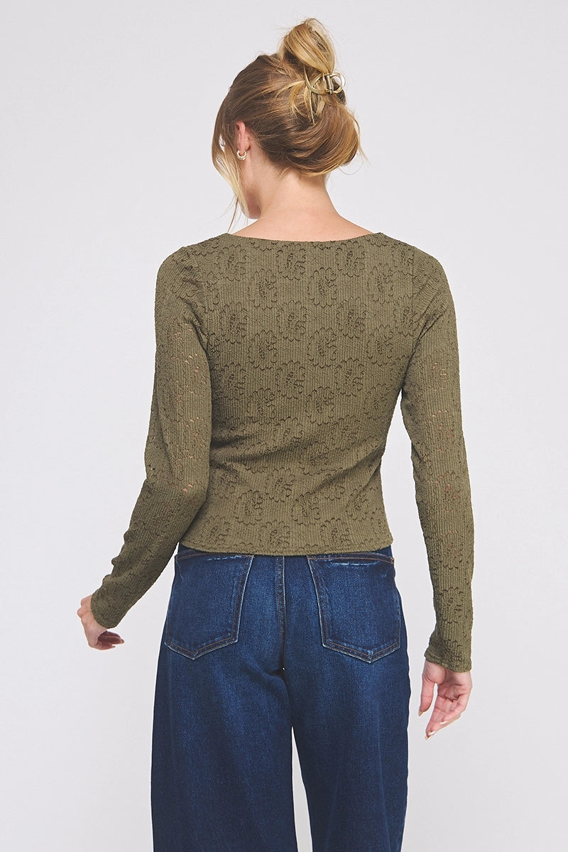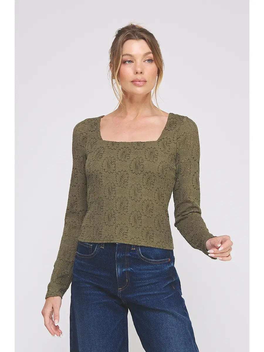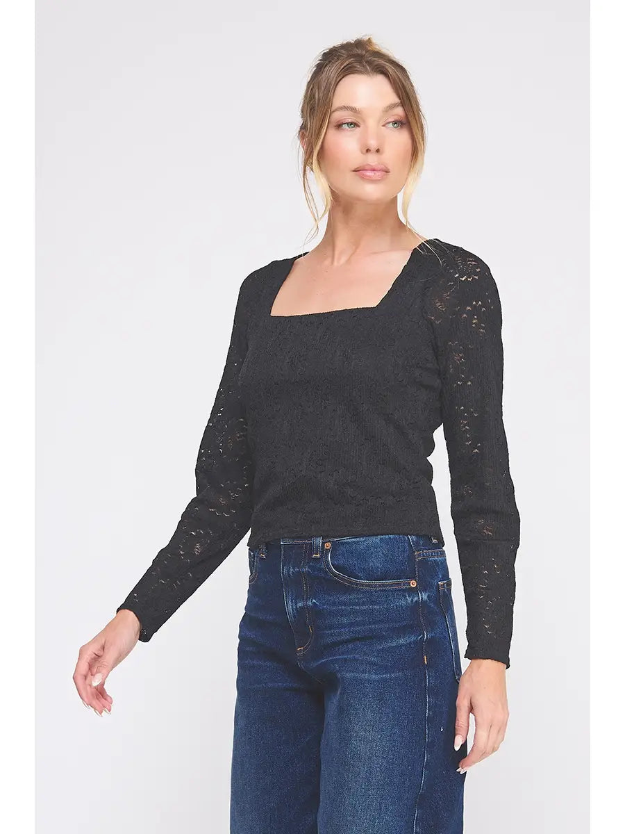 Lace Long Sleeve Square Neck Top