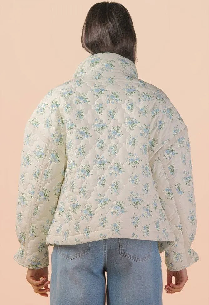 Effortlessly chic with a touch of romance, this quilted floral zip-up jacket is your new go-to layer for transitional weather. The oversized fit creates a relaxed, modern silhouette that pairs perfectly with everything from fitted denim to flowing dresses.