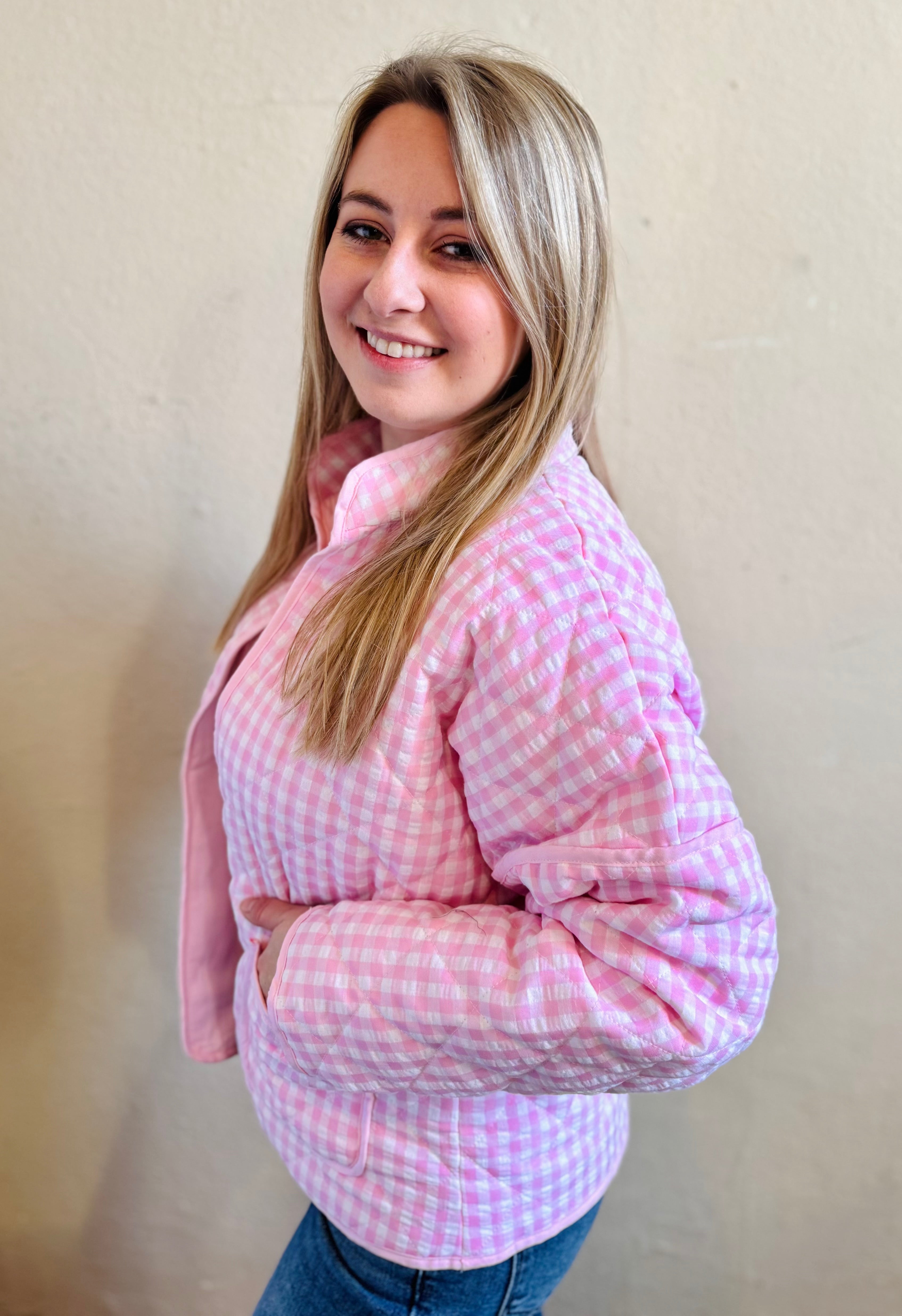 Whether you're running errands, meeting friends for brunch, or enjoying crisp spring days, this quilted gingham jacket effortlessly combines vintage-inspired style with contemporary flair. The soft, padded construction keeps you warm while the playful gingham print adds a pop of personality to your wardrobe.