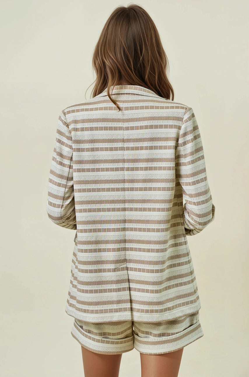 Striped Textured Double Breasted Blazer