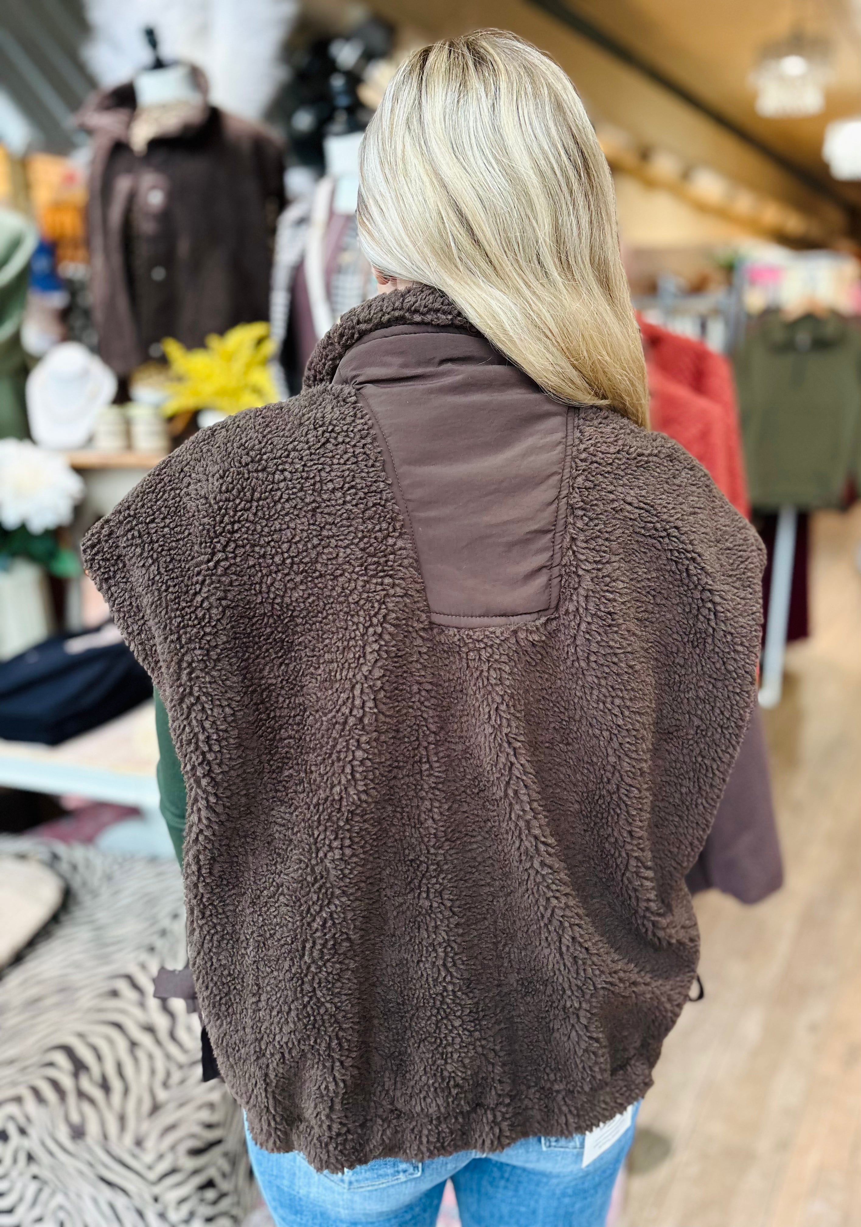 Bundle up in effortless fall and winter style with this soft sherpa vest — available in classic black, warm brown, and neutral beige. Designed with a relaxed, oversized fit, this piece layers beautifully over long sleeves or flannels. Snap-front closure, roomy pockets, and adjustable tie sides let you customize the fit while adding a touch of charm. Whether you’re running errands, hitting the pumpkin patch, or cozying up for weekend brunch, this sherpa vest brings that perfect blend of comfort and casual-chic style.