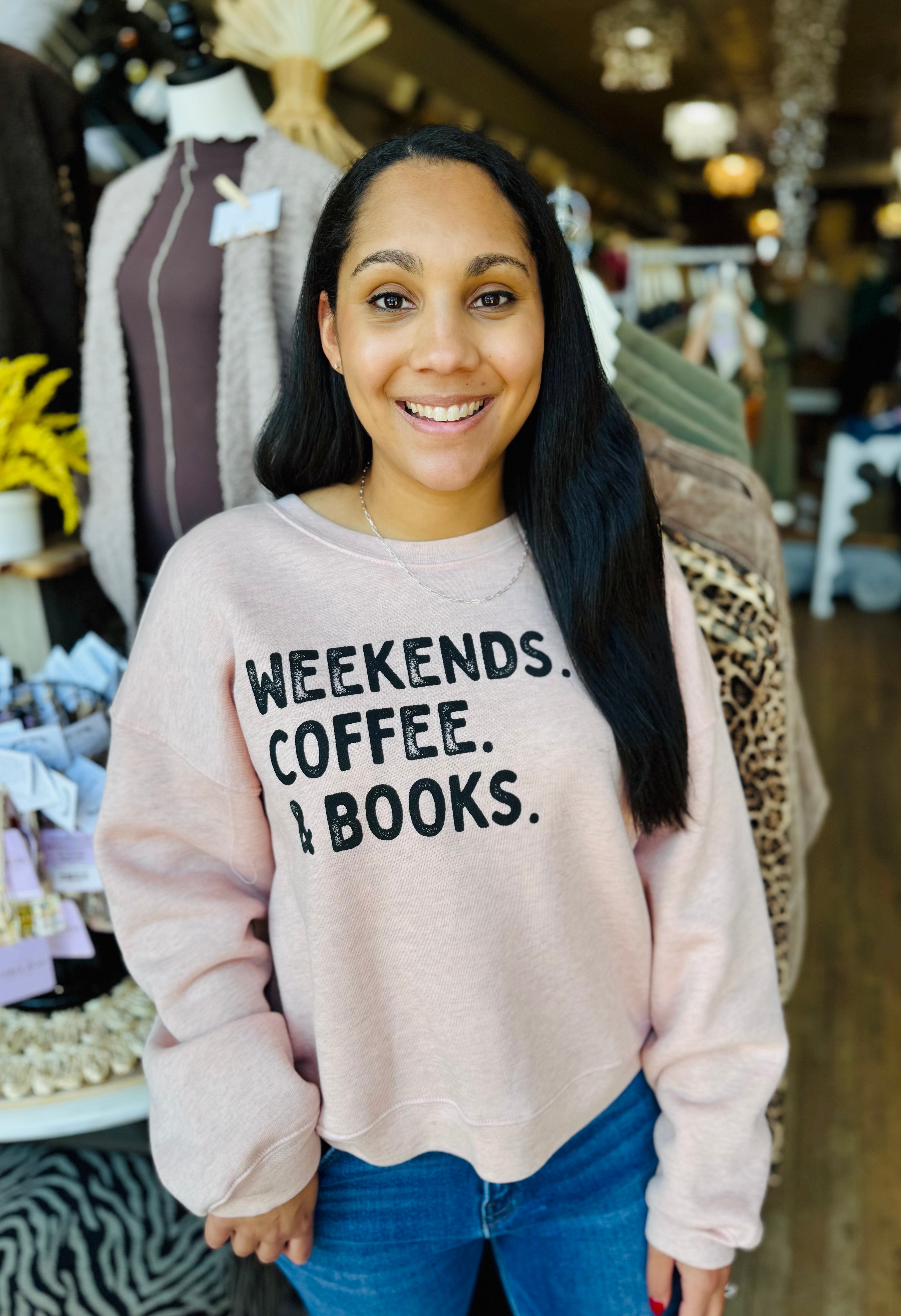 Embrace cozy weekends with the Weekends Coffee and Books Graphic Sweatshirt. This mid-length pullover features a relaxed boxy fit and foldable longer sleeves for added comfort and style. Made from plush sponge fleece, it offers a remarkably soft feel that keeps you warm all day. Ribbed cuffs, waistband, and a classic crew neck complete its timeless design, making it perfect for leisurely moments with coffee and a good book. Elevate your casual wardrobe with this irresistibly comfortable sweatshirt.